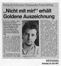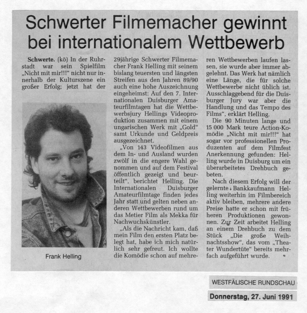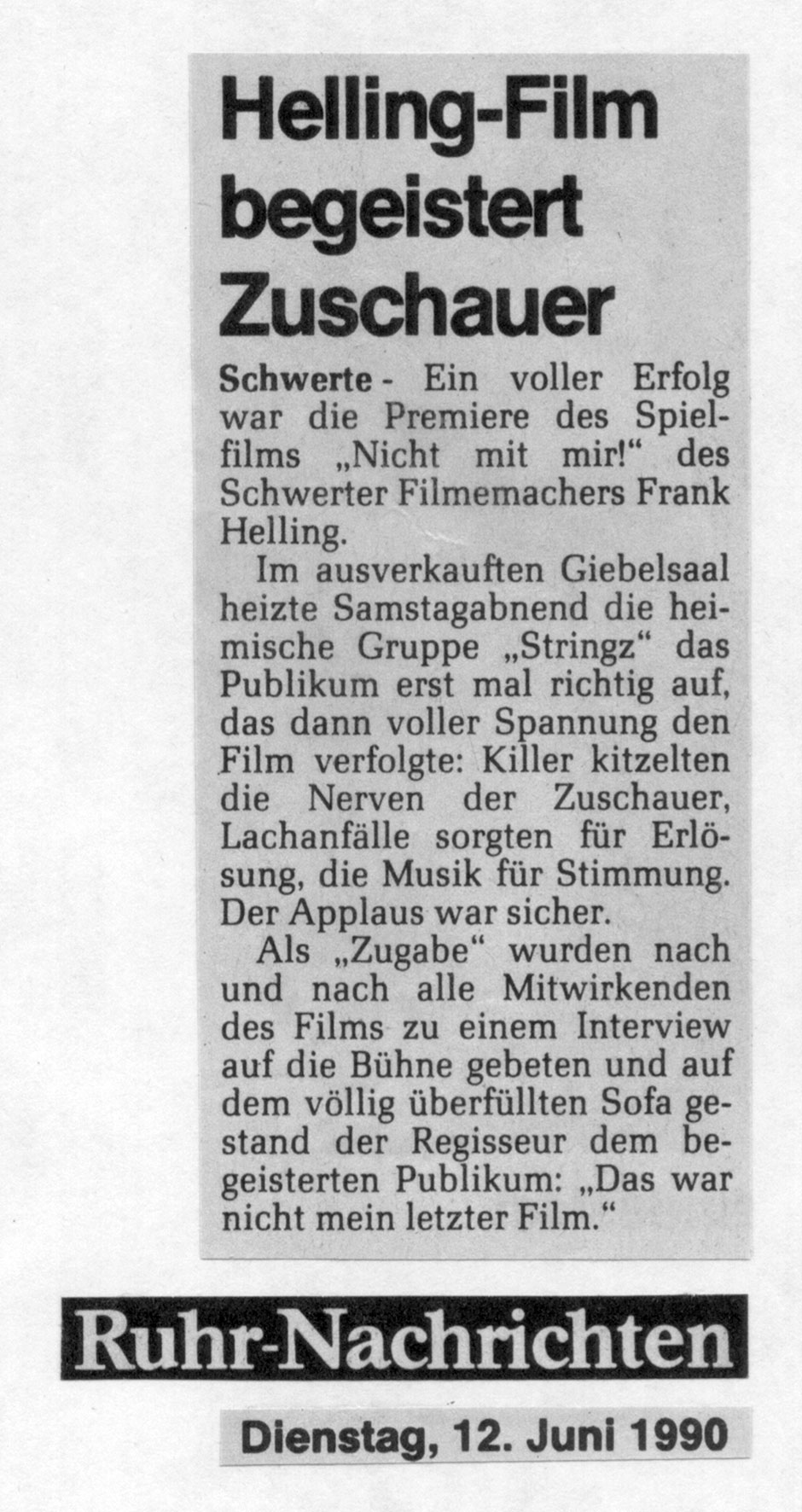 Als der Film fertig war, hatten wir wirklich viel gute Kritiken, und „Nicht mit mir!!!“ heimsten damals einige Preise im Amateurbereich ein.