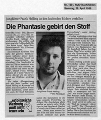 Als ich 35 Jahre später das VHS - Masterband abspielen wollte, verhedderte es sich nach ca. 30 Minuten im uralten Videorekorder und tötete damit die letzte lebende Kopie des Films.